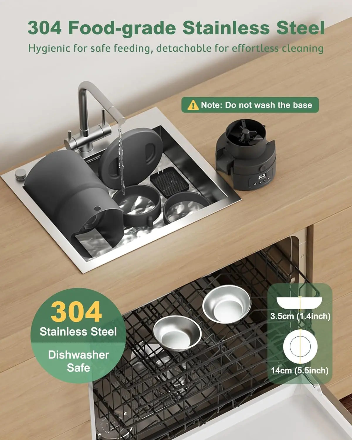 Safe & Hygienic Materials – Removable stainless steel bowls are durable, rust-resistant, and easy to clean