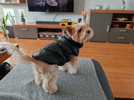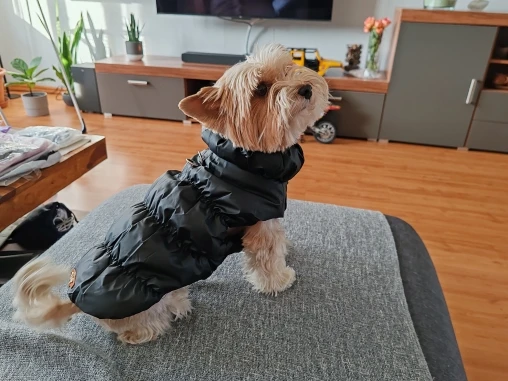 This four-legged raincoat provides complete coverage and reflective visibility, making it ideal for all-weather outdoor use.